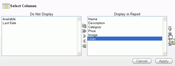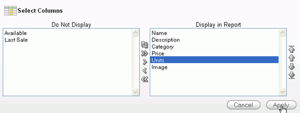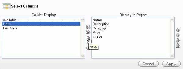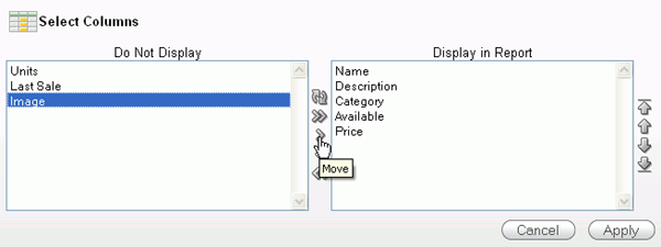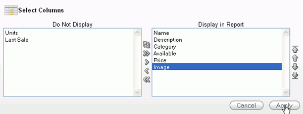 Select the Image column and click the Move icon to move the column to the Display in Report area.