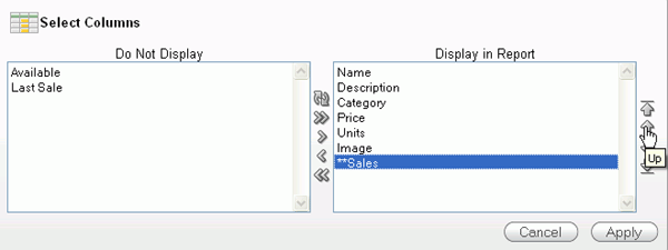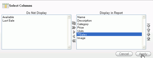 Notice that the computed Sales column now appears in the report. If you want to move this computed column, from the Actions menu, select Select Columns.