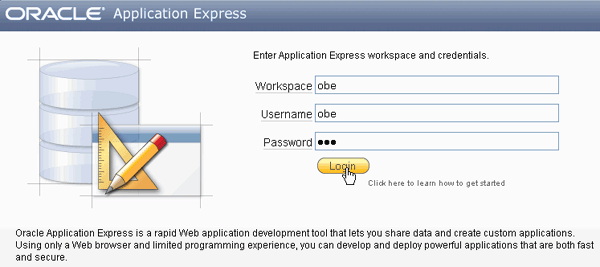 Login with the username/password you use when you login to Application Express and click Login.