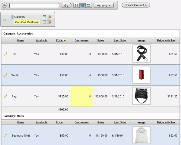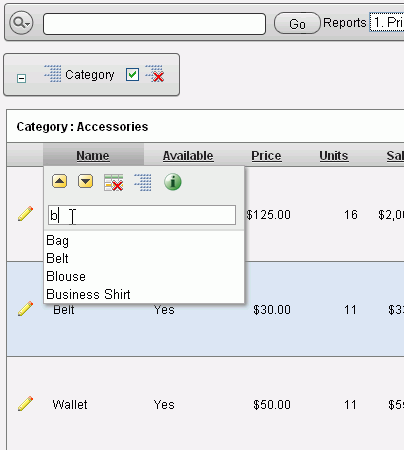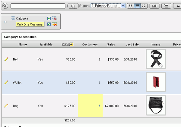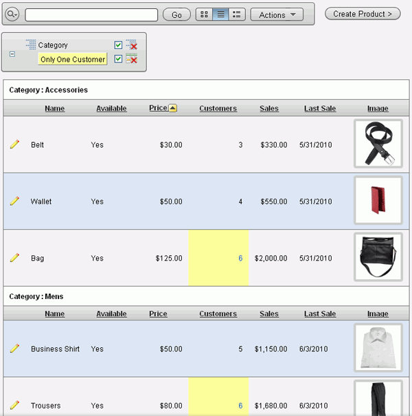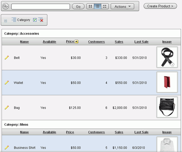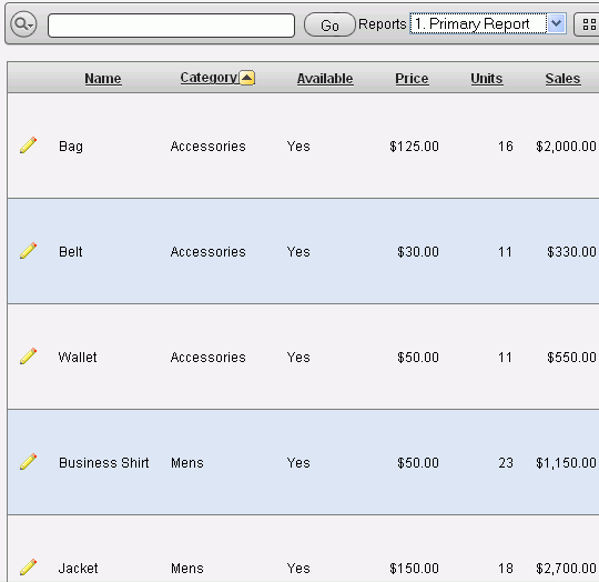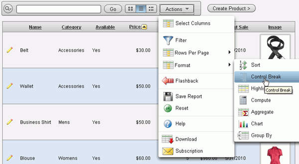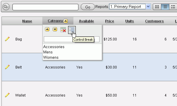 Notice that the control break was created and the Category column was extracted from the report. In this case, the report now shows a list of Products by Category.