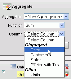 You want to add an aggregate that is a sum of Price. Select Sum from the list of Functions.
