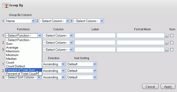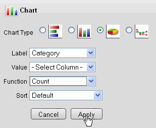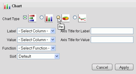 For pie charts, you can select a sort order, you can sort by label descending or you can sort on categories within the pie. For the function, you will not select a Sort Value. Click Apply.