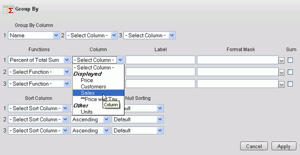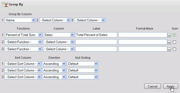 Enter Total Percent of Sales for the Label and click the Sum check box and click Apply.