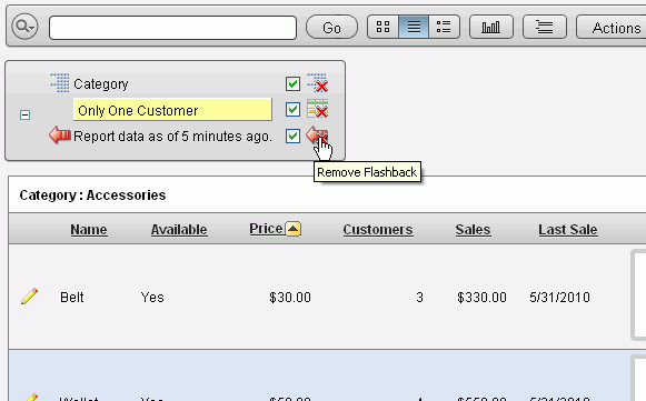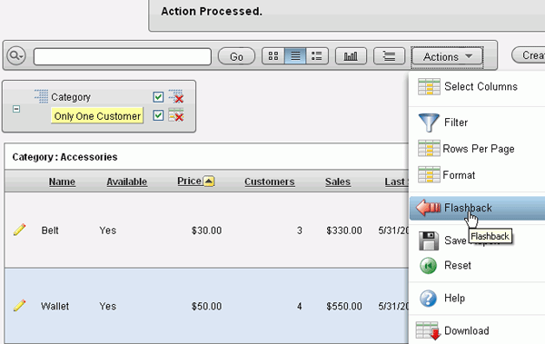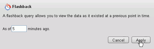 This action is used to view the data as it existed at a previous point in time. The default amount of time that you can flashback is 3 hours (or 180 minutes) but the actual amount will differ per database. Perform the following steps: