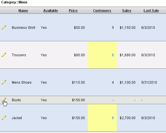 You want to clean up the data (for the other tutorials you may follow). Delete the product you just added. Select the edit icon in front of the Boots row.