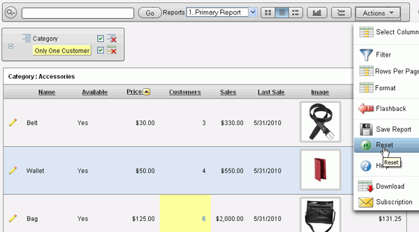 This action is used to reset the report back to the default settings and remove any customizations that you have made. Perform the following steps: