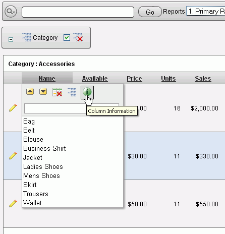You can display Column Information about a particular column from the column header. The Column Information icon will only appear if there is help text defined for the column. This is defined by the developer who created the report. Perform the following steps: