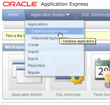 Enter the following URL to log in to Oracle Application Express. http://localhost:8080/apex