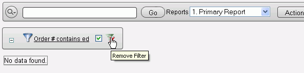 This time you receive no hits because the filter was only applied to the Customer Name column. Click the red X next to the filter to remove it.