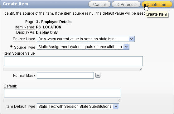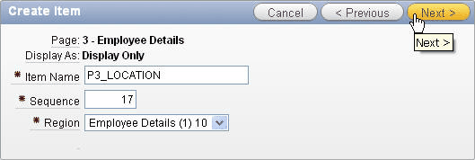 Enter P3_LOCATION for Item Name and click Next >.