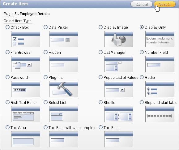 Ensure that Display Only item type is selected and click Next >.