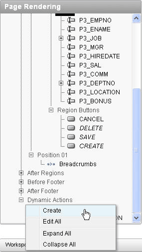 Now you are ready to create your dynamic action. Right click Dynamic Actions and select Create.