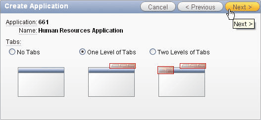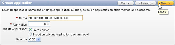 For Name, enter Human Resources Application. Keep the default value of From Scratch for the Create Application and click Next >.