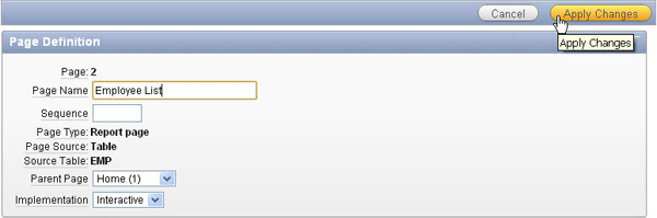 Change the Page Name to Employee Details and click Apply Changes.