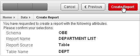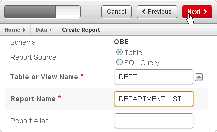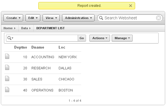 In this topic, you will create a report in a websheet application based on a table from the database. Perform the following steps: