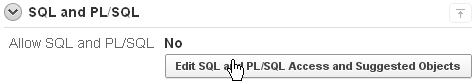 Expand the SQL and PL/SQL region and click Edit SQL and PL/SQL Access and Suggested Objects.