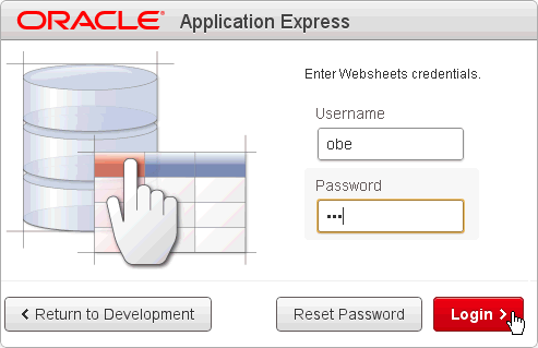 Enter the credentials you used to log in to your Application Express workspace and click Login >.
