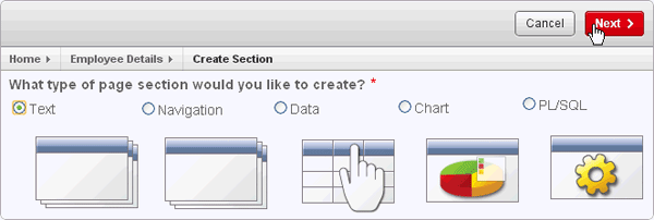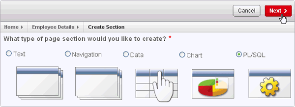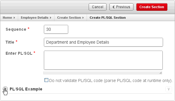 Copy the PL/SQL example and paste it in the Enter PL/SQL field. Then, click Create Section.