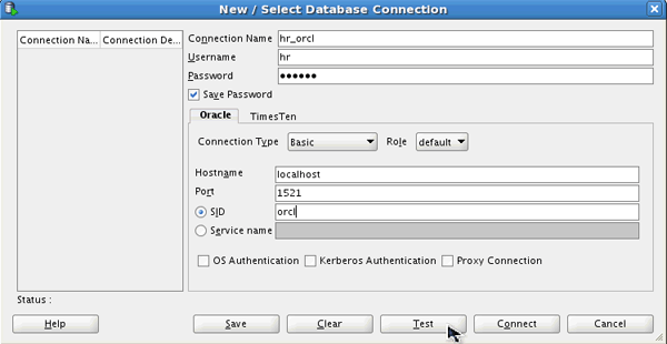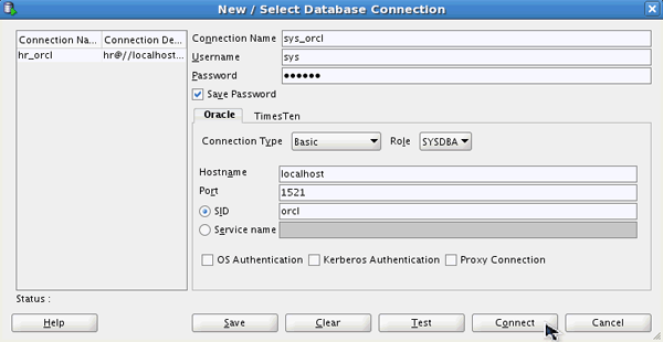Connection Name: hr_orcl
