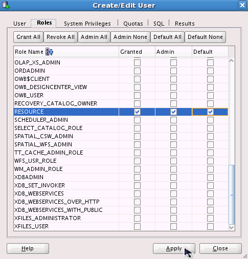 Select the Connect and Resource roles and click Apply.
