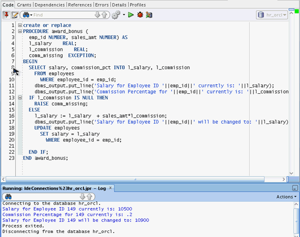 In this topic, you create, execute and debug a procedure that determines the commission any employee receives based on a sales amount and the employees commission percentage.