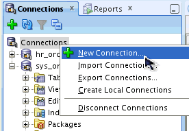 Create a connection for the SYS User. Right-click Connections and select New Connection.