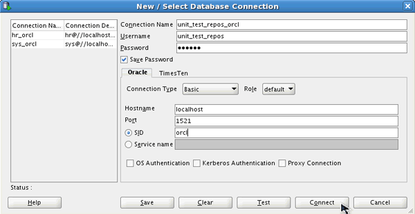 Connection Name: unit_test_repos_orcl