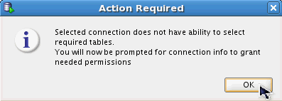 This connection does not have the permissions it needs to create the repository. Click OK to show the permissions that will be applied.