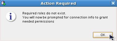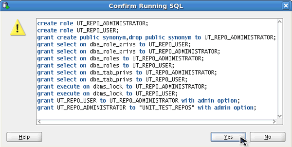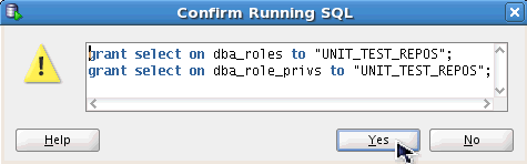 The UNIT_TEST_REPOS user does not currently have the ability to manage repository owners. Click OK to see the grant statements that will be executed.