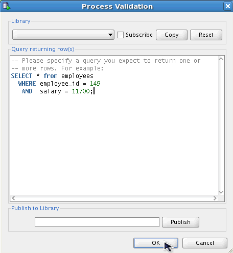 Specify the following query and click OK. This query will test the results of the change that the unit test performed.