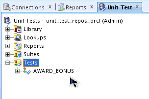 Select the AWARD_BONUS test in the left navigator. Notice that the test details are displayed on the right panel.