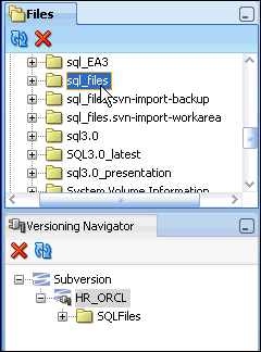 In the Versioning Navigator, expand HR_ORCL > SQLFiles.