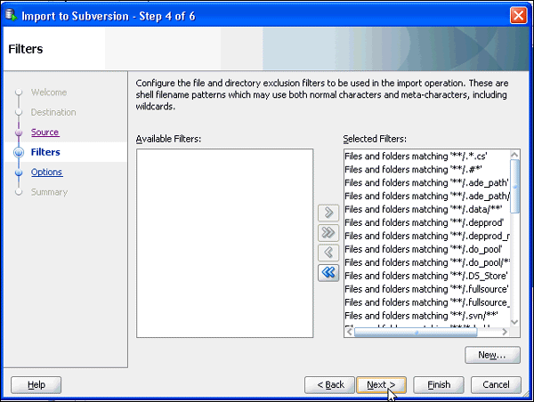 To import the files to be versioned into the Subversion repository, perform the following steps: