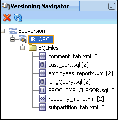 Expand the Subversion node in the Versioning Navigator. The repository for the HR_ORCL connection is created.
