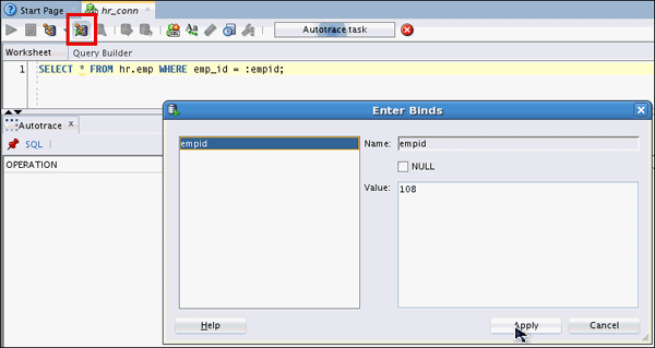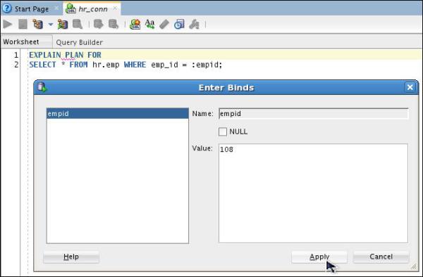 In this section, you will use SQL Plan Baseline to associate a hinted execution plan with a hard-coded SQL statement.