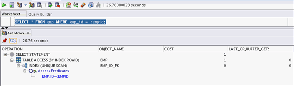Use the Autotrace option to access the performance characteristics of the following SQL query :