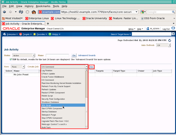 This will bring you to the Job Activity page. Click on the Create Job dropdown list, select SQL Script and then click Go: