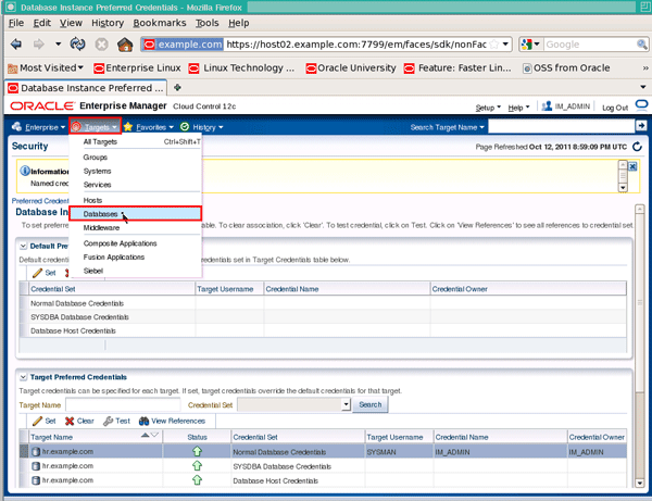 In this tutorial, you learn how to create and use a named credential, as well as setup a preferred credential, in Enterprise Manager Cloud Control 12c.