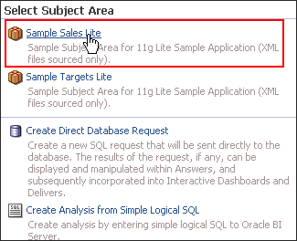 You will be asked to select a subject area indicating the data set. Select Sample Sales Lite.