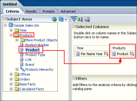 b. Select Product from the Products folder and drag it to the Selected Columns area.
