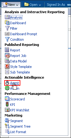 Now create an agent to create and deliver the alert by using Oracle BI Delivers. |