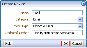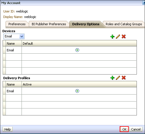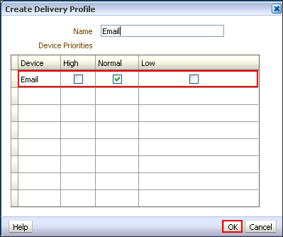 c. Both the Email Device and Delivery Profile are listed on the Delivery Options tab. Click OK.