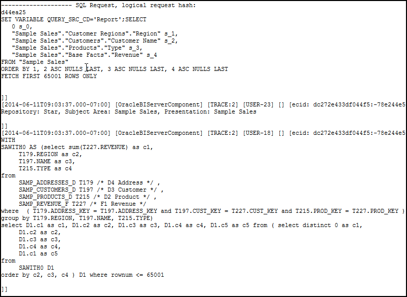 "orcl".""."BISAMPLE"."D3 Customer"."CUST_KEY" = "orcl".""."BISAMPLE"."F1 Revenue"."CUST_KEY"
