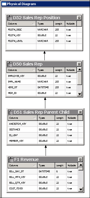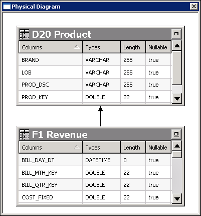 Click OK to close the Physical Foreign Key dialog box. The join is visible in the Physical Diagram.