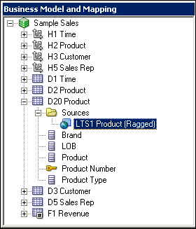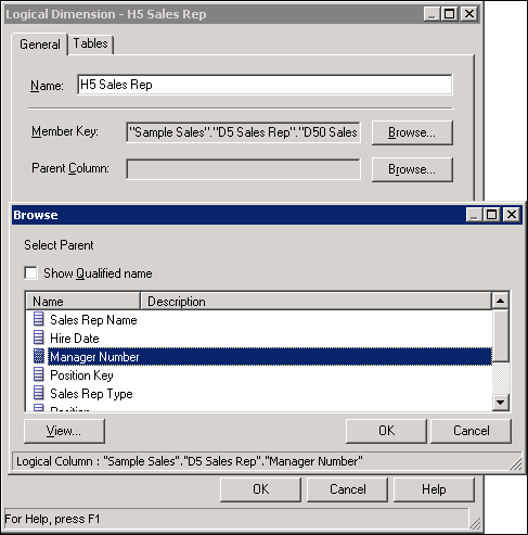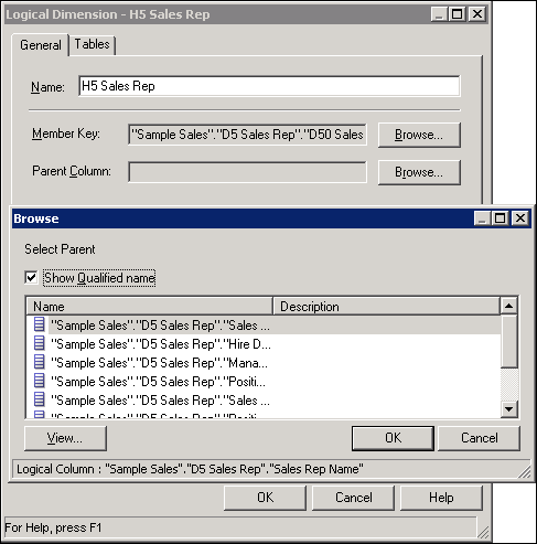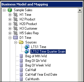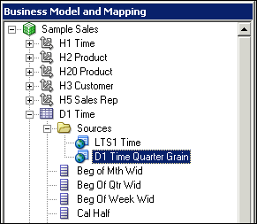 In the BMM layer, double-click the H1 Time logical dimension to open the Logical Dimension dialog box.