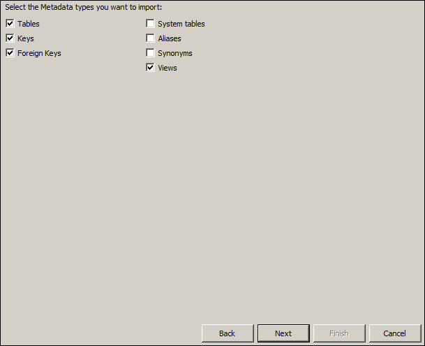 Accept the default metadata types and click Next.