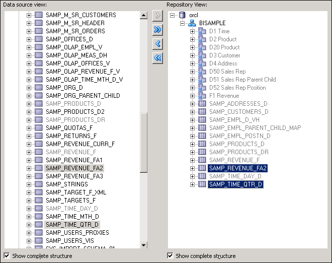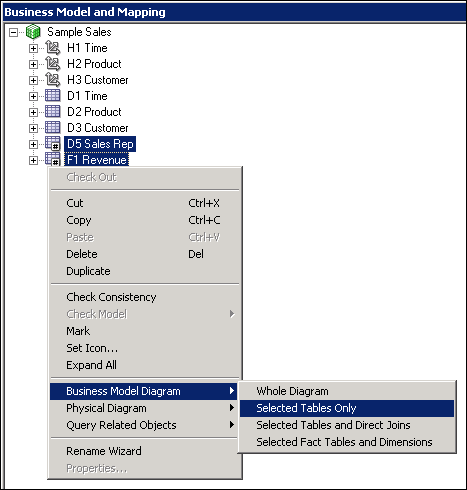 Use Ctrl+Click to select the following tables from BISAMPLE schema: