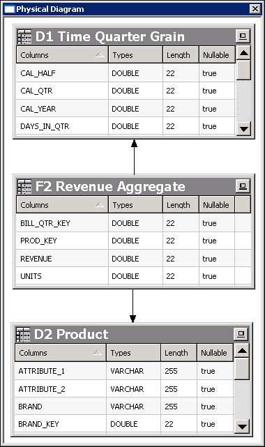 Right-click one of the highlighted alias tables and select Physical Diagram > Selected Object(s) Only to open the Physical Diagram. Alternatively, you can click the Physical Diagram button on the toolbar.