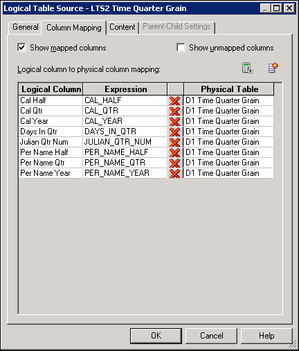 The Business Model and Mapping layer of the Administration Tool defines the business, or logical model of the data and specifies the mappings between the business model and the Physical layer schemas. This layer is where the physical schemas are simplified to form the basis for the users’ view of the data. The Business Model and Mapping layer of the Administration Tool can contain one or more business model objects. A business model object contains the business model definitions and the mappings from logical to physical tables for the business model.