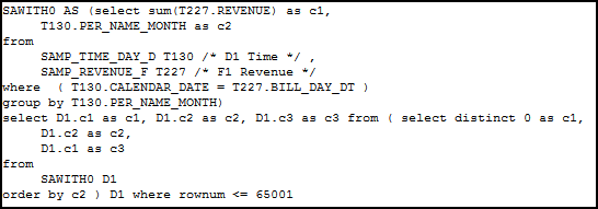 "orcl".""."BISAMPLE"."D1 Time"."CALENDAR_DATE" = "orcl".""."BISAMPLE"."F1 Revenue"."BILL_DAY_DT"